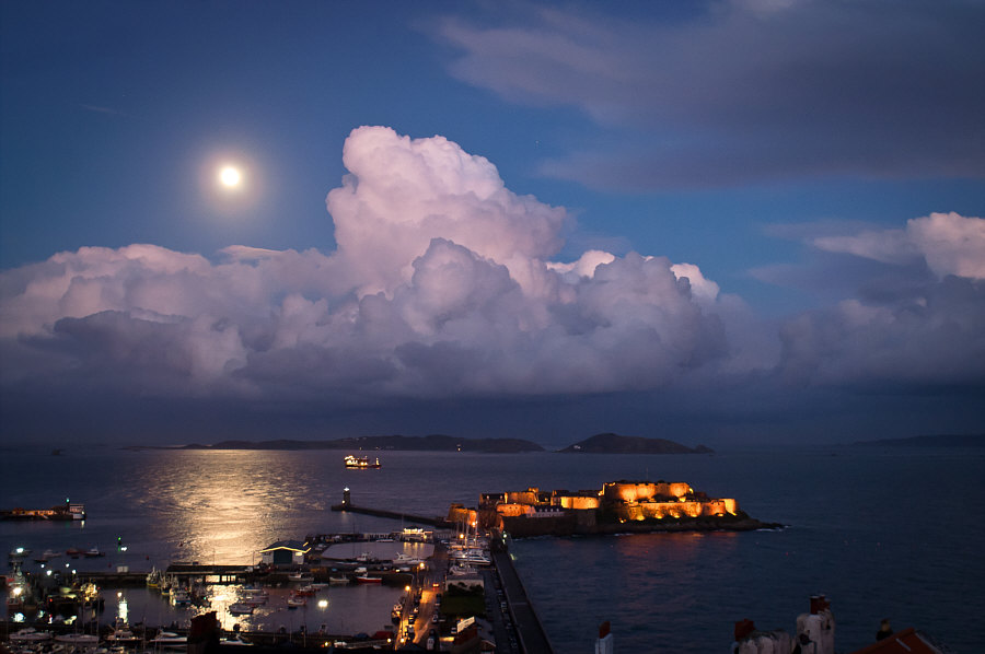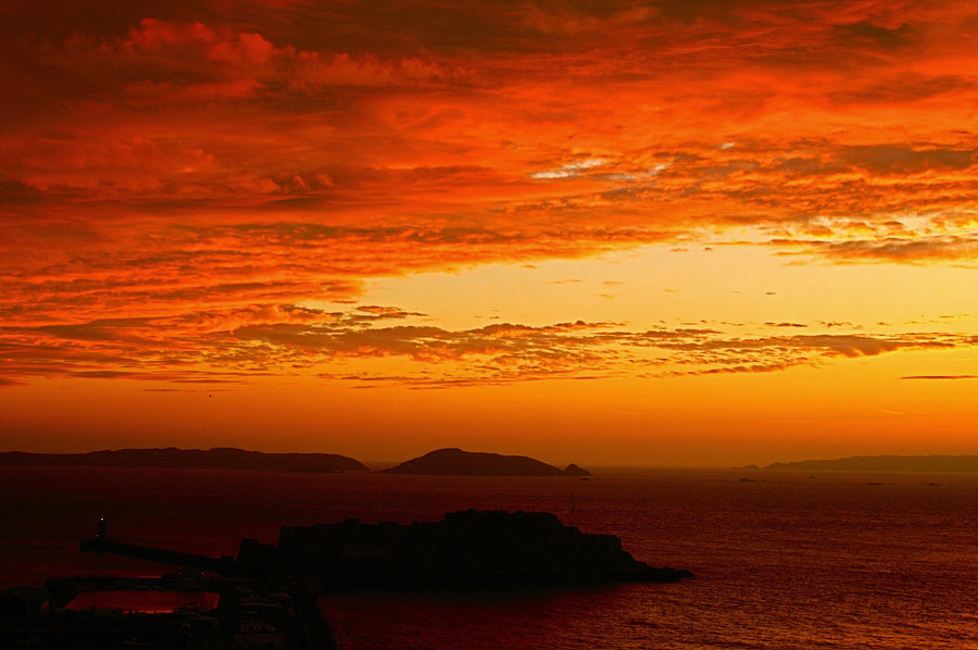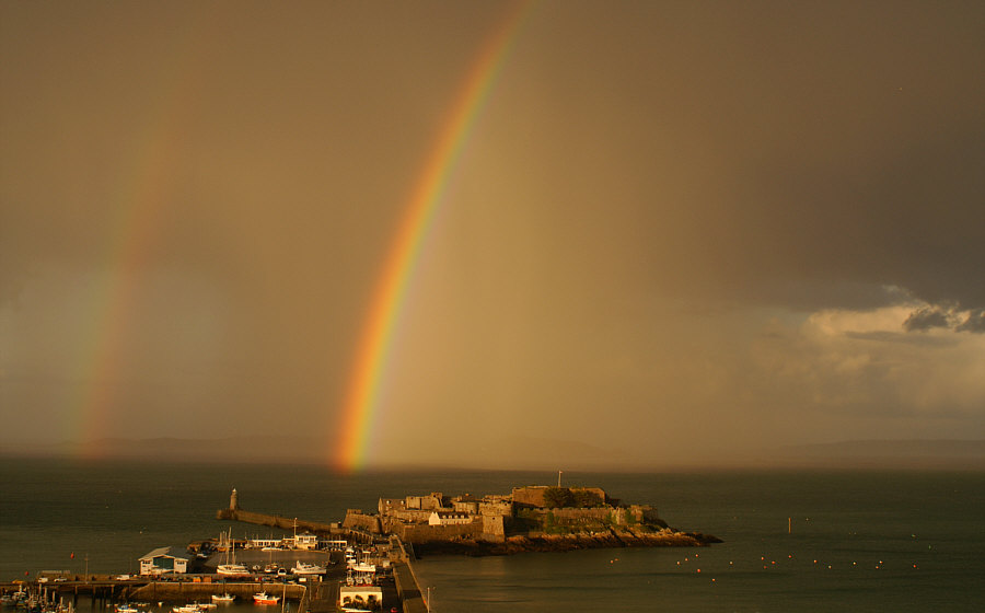 Geschichtsliebhaber werden sowieso weiterlesen aber die Bildergucker sollten es nicht verpassen Sag ich nur mal besser vorsichtshalber . .. . Es war einmal eine Insel Eine sogenannte Gezeiteninsel, was bedeutet: bei Ebbe kann man rüberlatschen bei Flut muss man schwimmen oder auf die Ebbe warten Eine kleine Insel, die auch Fußlahme ganz schnell umrundet haben Da ... bauen wir jetzt ne Burg drauf ... dachten sich die die damals zu denken hatten und so geschah das auch zwischen 1206 und 1256. Die Burg wurde mal erobert, mal vergrößert, wie das mit Burgen so geht und 1672 ... ![]() ... sah sie so aus. Die Flagge steht auf dem Wohnturm. Im Turm ist der Sitz des Gouverneurs. Zum Bild selbst kann man sagen: "gerade noch rechtzeitig gemalt" ... denn noch im selben Jahr kam ein Blitz und meinte, das Waffenmagazin wäre der richtige Ort, um sich zu entladen. Das wars dann mit dem Wohnturm, einigen Häusern, dem Gouverneur, seiner Frau, seiner Mutter und einigen weiteren Menschen, die zur falschen Zeit am falschen Ort waren. 1814 sahs dann so aus ... ![]() ... und genau 45 Jahre später kam man auf die richtige gute Idee, dass man die Insel doch mit dem Festland verbinden könne. Man baute einen Wellenbrecher ... und irgendwann feierte Königin Victoria ihr Thronjubiläum und dann wurde am Wellenbrecher ein Teich für Modelljachten angelegt ... und heute gibts da auch einen Parkplatz und etwas, das man Touristen nennt und so sieht das aus: ![]() Vier Museen gibts auf der Insel und auch einen gustaffo89, der dort wohnt. Und der obiges Bild und alle weiteren fotografiert hat. Die Insel heißt Cornet Rock, aber die meisten sagen so gar nicht, sondern nennen die Insel Castle Cornet, so wie die Burg heißt. Die Stadt, von der aus wir auf die Insel sehen, nennt sich Saint Peter Port ... hat ca. 16.000 Einwohner und ist die Hauptstadt und wichtigste Hafenstadt von Guernsey Die Insel ist ungefähr 10 x 10 Kilometer groß und liegt zwischen England und Frankreich, ist also eine der Kanalinseln. Schöne geschützte Lage, denn trotzdem die Insel auf der Höhe von Mannheim/Nürnberg liegt, gibt es dort fast keinen Frost ... dem Golfstrom sei Loblied und Dank. Nu aber zu den Bildern ... gustaffo89 hat das Castle Cornet zu ganz verschiedenen Zeiten und Stimmungen fotografiert und es ist erstaunlich, wie schön so eine Burginsel sein kann. Und vor allem wie groß die Unterschiede bei gleicher Szene sind. Ein ruhiger Abend ![]() Das erste Morgenlicht ![]() Frühlingssturm ![]() Morgens, nachdem die Sonne schon aufgegangen ist ![]() Mondschein ![]() Sonnenstrahlen ![]() Sturm im Mai ![]() Mit einem Herz, das die "Red Arrows" in den Himmel gemalt haben: ![]() Feuerhimmel ![]() Mit Nebel und Kreuzfahrtschiff ![]() Regenbogen ![]() Insel, Steine, Gebäude, Mauern. Keine Bäume, keine Blumen. Und das elfmal. Hätte ich das vorher so gesagt, dann wäre die Antwort "auwei, wird nix, trist" gewesen. Und dann das. 11 ganz unterschiedliche, spektakuläre Bilder. Ganz großes Kino heute und hier :)). |