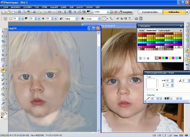 Jetzt fehlen noch die Haare. Die male ich mit dem Bürstenwerkzeug.