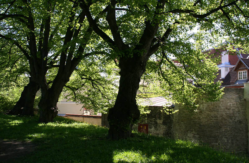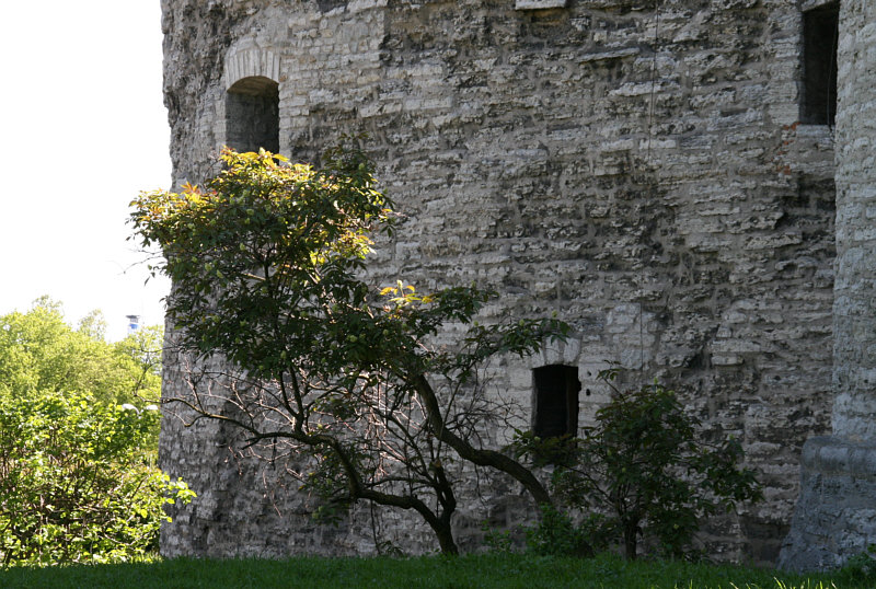Alte Bäume wachsen wie kleine Kunstwerke vor alten Mauern: