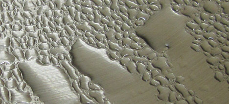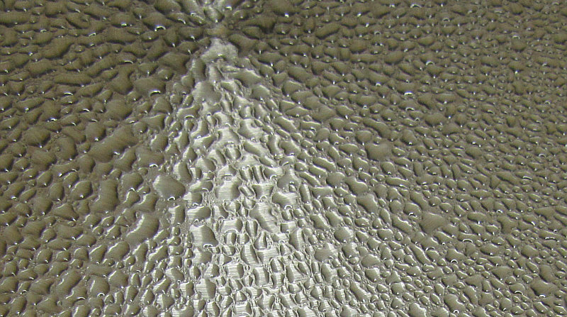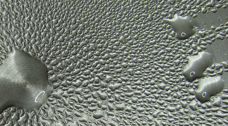 Wassertropfen auf Metallplatte ... oder Moment mal ... das ist der Blick