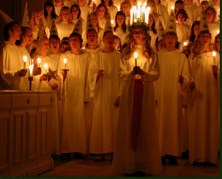 zeigt dieses Bild vom Luciafest in einer Kirche:
