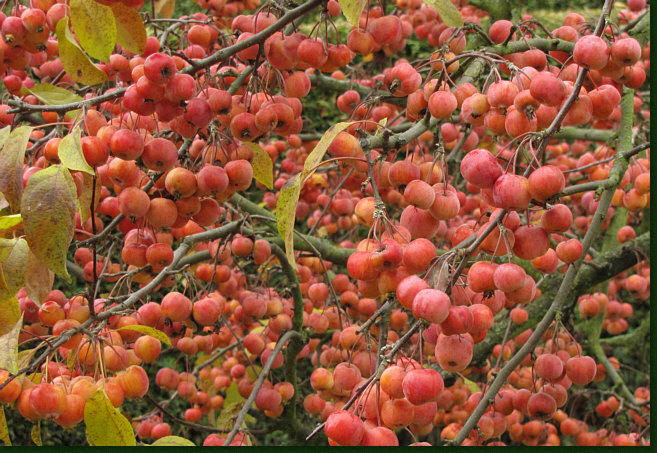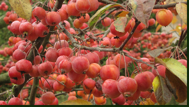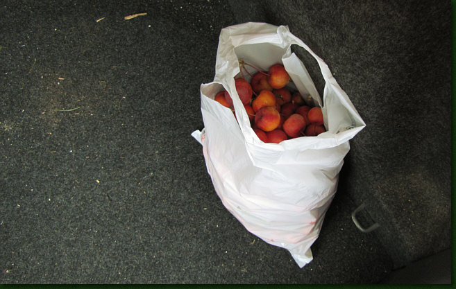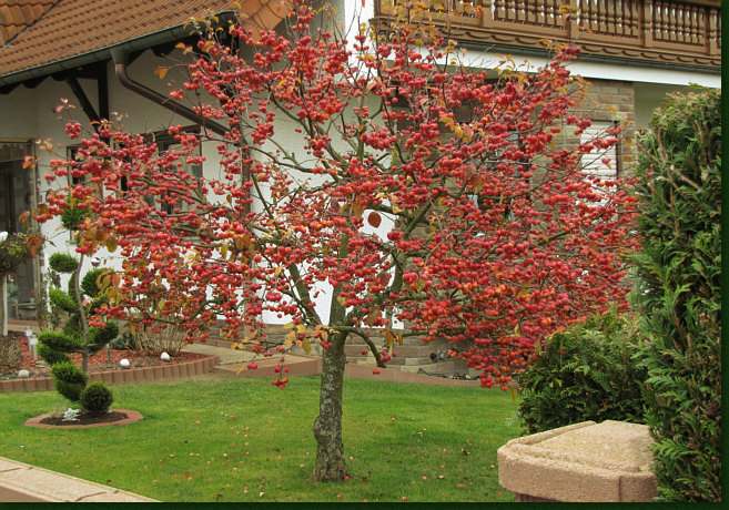 und fragt, ob das Zieräpfel seien ... ja das sind Zieräpfel, sagt die Frau.