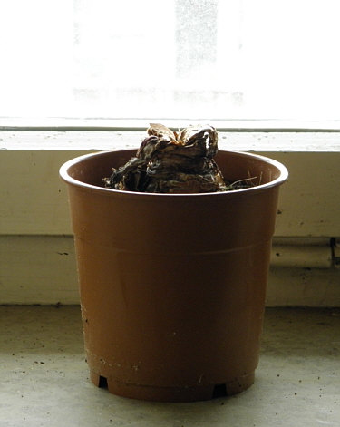 und dann wird der Topf mit der Erde und der Zwiebel darin einen Tag bis