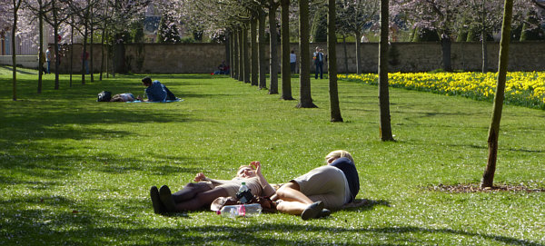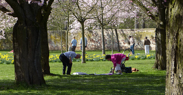 denn bei so umherlaufenden Menschen kann man nicht in Ruhe auf dem Rasen