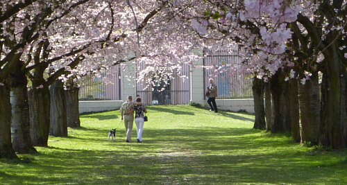 Dieser schönen Zierkirschenalle gehört zum Schwetzinger Schloß ...