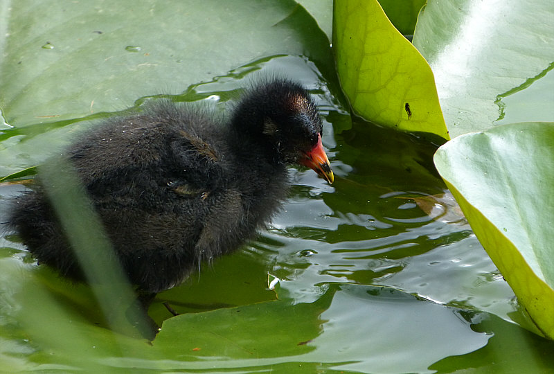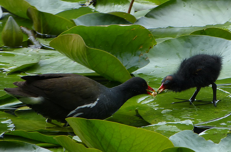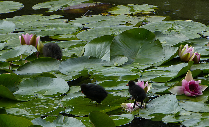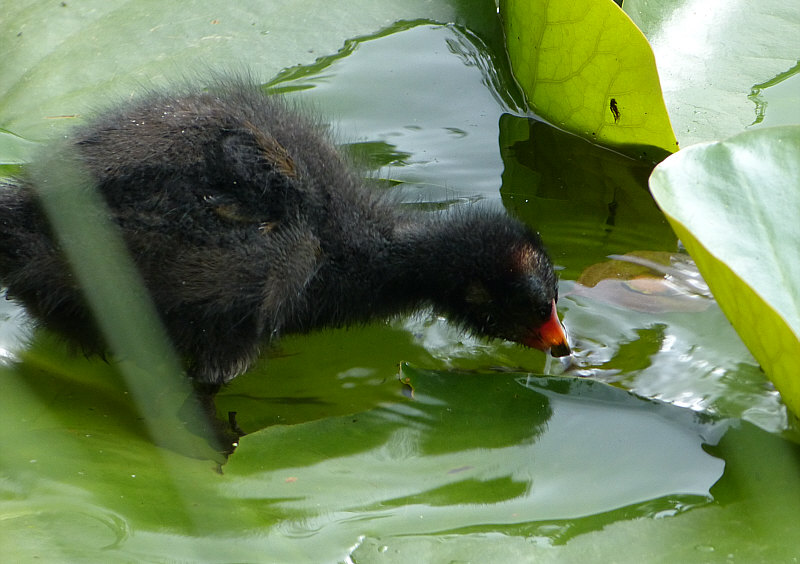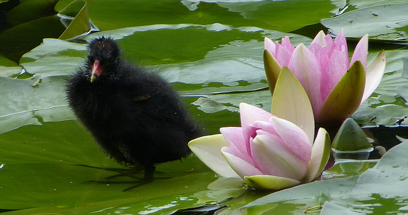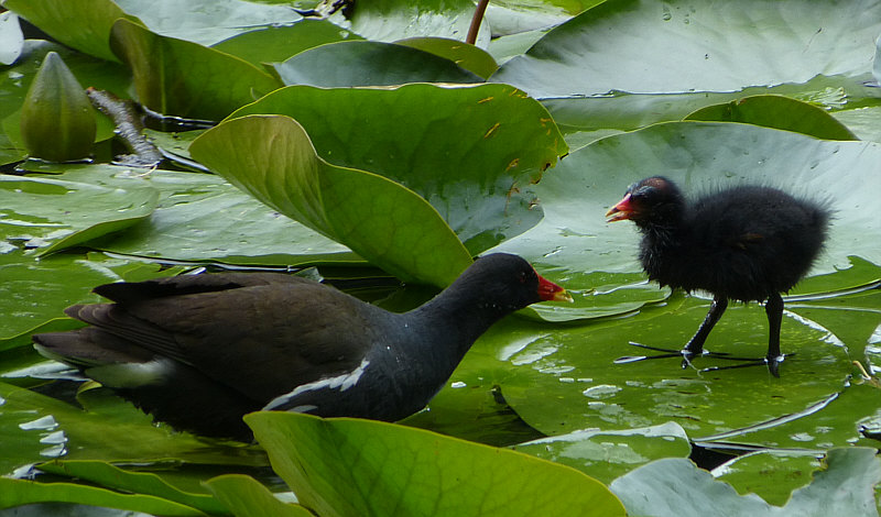 Die stiefelt dann auch über die Seerosenblätter ... bis zum Rallenkind: