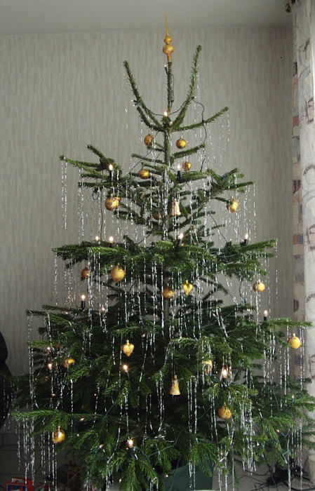 immer relativ sparsam geschmückt, kein Lametta (auf gar keinen Fall),