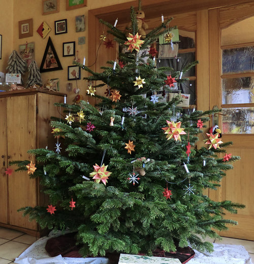einen der (selbsgebastelten) Bascettasterne auf der Spitze. Da wir in