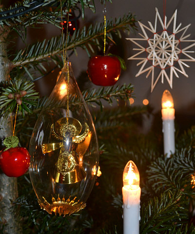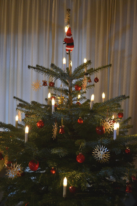 Lebkuchensterne, klassische Kugeln und Engel hängen an Dori's Baum ...