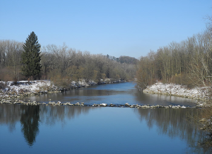 ... und fotografierte die himmelblauspiegelnde Iller: