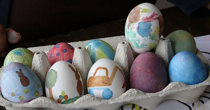 mit handelsüblichen Ostereierfarben färben oder bemalen kann.