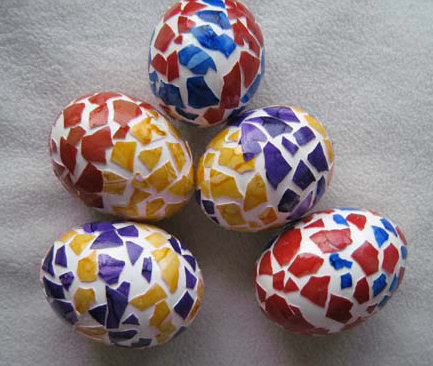... wurden die Eier mit Seidenpapier beklebt