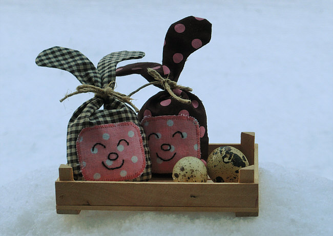 Mit Watte und Reis füllen ... zunähen, Schleife dran, auf Kasten setzen, mit