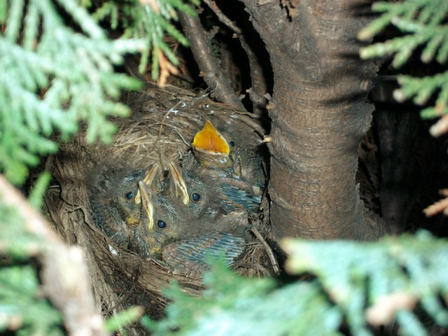 Zwei Wochen nach dem Schlüpfen verlassen die kleinen Amseln das Nest,