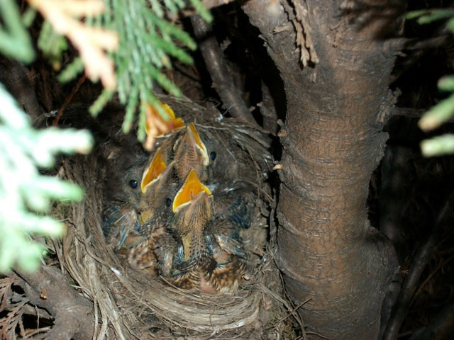 Und die kleinen Amselchen bewegen sich auch ... hier liegen sie anders: