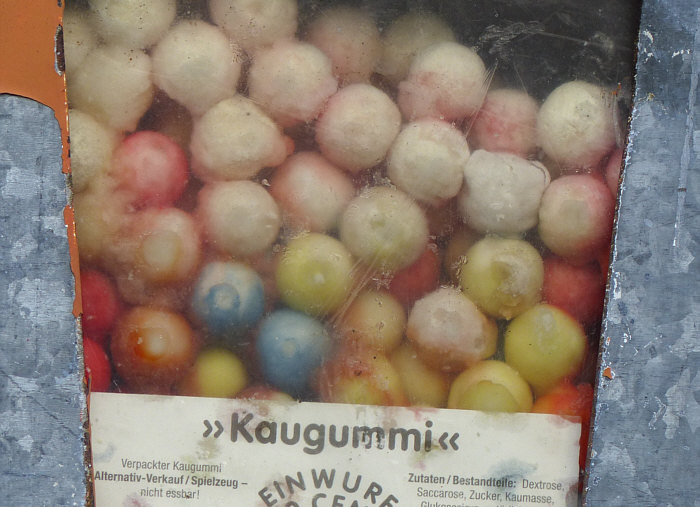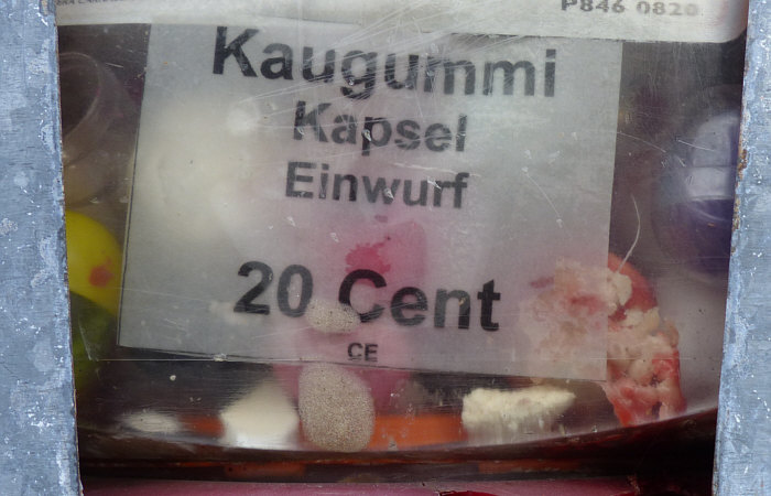 Dann gehn wir doch einfach etwas näher an diesen Kaugummiautomaten ran: Haste mal 10 oder 20 Cent ?