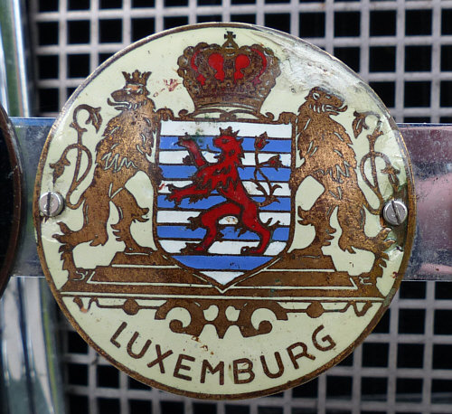 Mit der buntesten Plakette endet diese Reihe über dem Nummernschild ... ganz