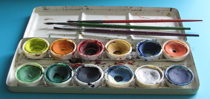 als ihren alten Schulfarbkasten, den sie in den 50er-Jahren benutzt