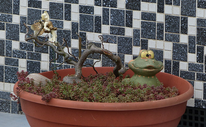 Blümchen, Steine, Putte, das Doppelhaus mit den unterschiedlichen Farben