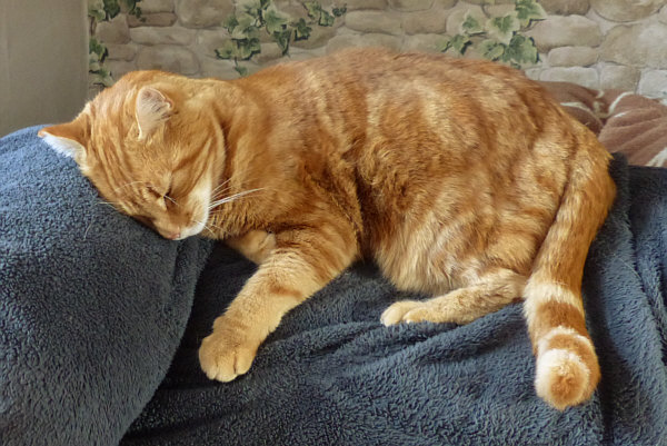 Das ist ein wunderbarer Flauschanzug. Herrchen war so lieb und hat sich extra hingelegt, damit ich mich auf ihn legen kann. Das lasse ich mir natürlich nicht entgehen.