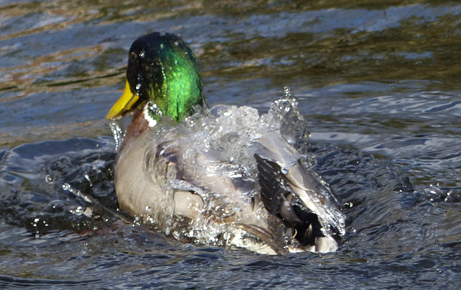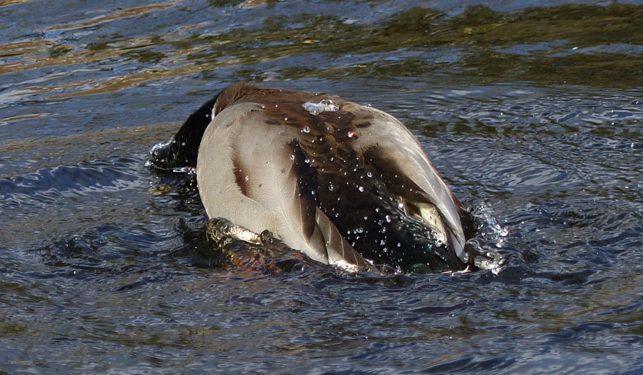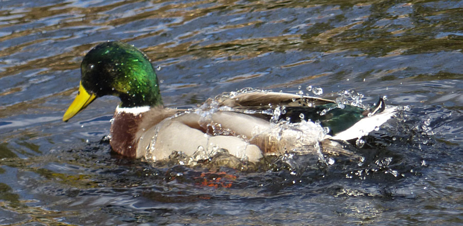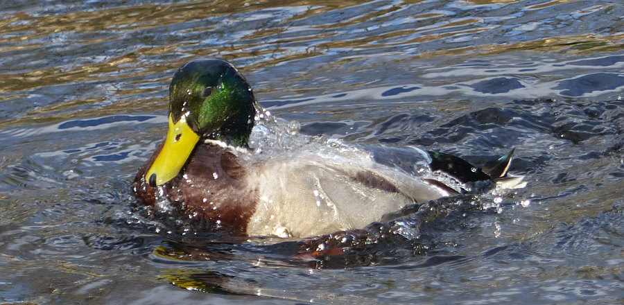 Wir schauen mal einer Ente bei der Gefiederpflege zu, denn Enten benetzen