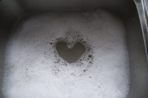 "Zeigefinger malt Herz ins Spülwasser"-Herz von Birgit W.