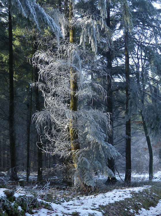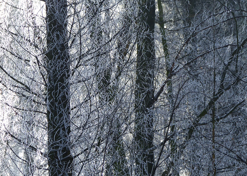 aber dieser Raureif ummantelt alles ... und wenn der Wind stark genug