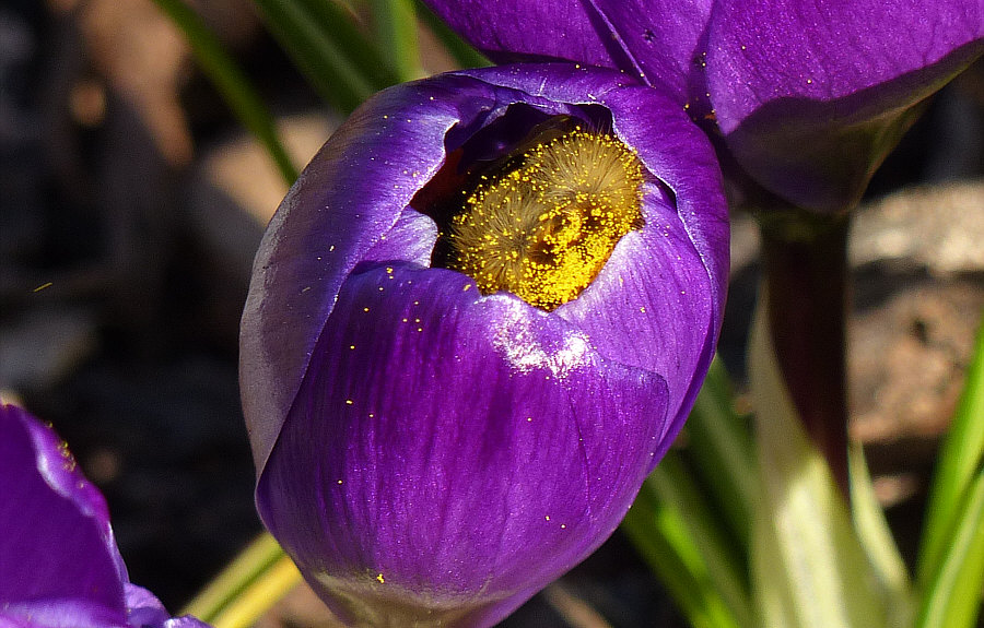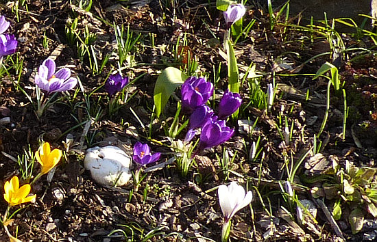 ... und zwar in der Bildmitte diese dunkellilafarbenen Krokusse: