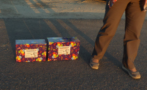 Beate wird nicht verschenkt, sie steht daneben, damit Ihr die Größe der Päckchen