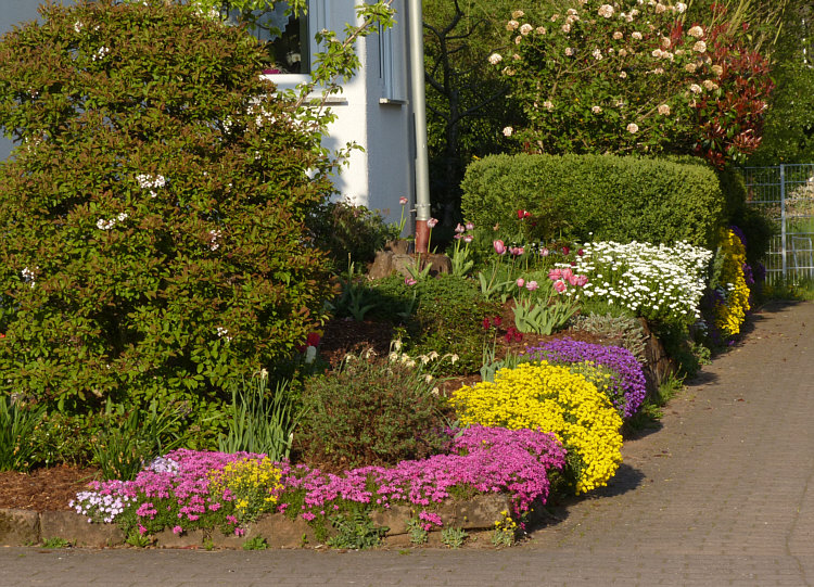denn hier gabs statt Neubau-Vorgarten-Steinwüste schöne Polsterpflanzen: