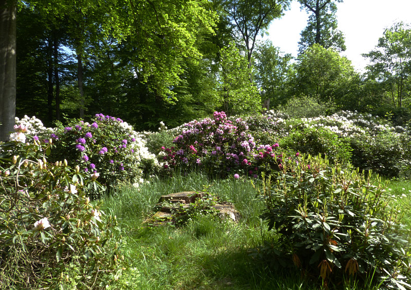 Dort, wo der alte Baum nicht mehr steht, blühen Rhododendron ... sie sind also
