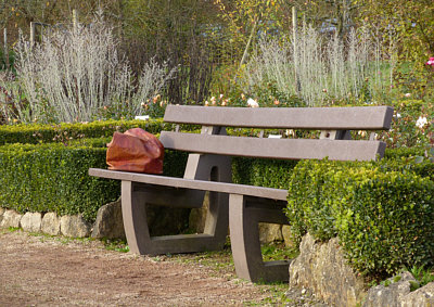 Steht da verlassen auf der Bank und es ist auch niemand in der Nähe, dem oder