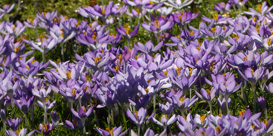 Dieser eine Tag ... zwischen all den Regentagen. Diese eine Sonne ... zwischen all den Wolken. Der Traum vom Frühling fand am letzten Samstag statt ... Ich hätte ja nicht geglaubt, dass die frühen botanischen Krokusse schon so schön blühen, aber dann bin ich mal nachschauen gefahren. Der Hermannshof in Weinheim ist ja an den Winterwochenenden geschlossen, also waren die Parks in Landau unser Ziel. Dort angekommen ... ein Traum ... ein Frühlingstraum in grün und violett: ![]() ![]() Ein Aaaah und Ooooh wanderte durch meine Gedanken und ich versank in einer lila Frühjahrswunderwelt: ![]() ![]() ![]() ![]() Dieser Mann hat das genau Richtige gemacht: ![]() Carpe diem ... nütze den Tag. ![]() Einatmen ... den Frühling einatmen ... ![]() ![]() |