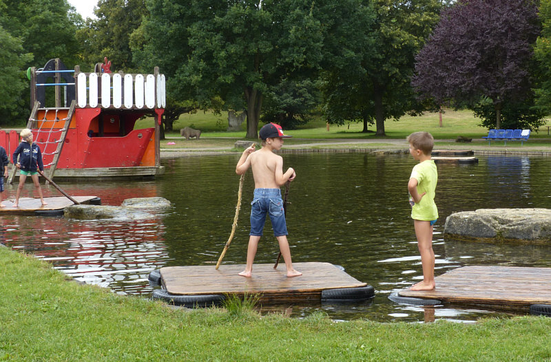 Der September schenkt uns noch ein bisschen Sommergefühl ... ... das freut die Erwachsenen und auch die Kinder. Denn dann können sie nochmal Kapitän spielen, z.B. auf diesem tollen Schiff: Da könnte man fast neidisch werden ... sowas tolles. Gabs in meiner Kindheit nicht ... müsste es aber in jedem Ort geben. Ist ja nicht nur das Schiff zum Klettern und Kapitän spielen ... nein ... ... es gibt auch noch diese kleinen "Boote": Welch tolle Möglichkeiten ... das Wasser ist ganz flach und die Kinder können ... ... mit Stöcken auf den Holzquadraten übern See fahren. Das macht richtig Spaß, zuzuschauen ... danke an die Stadtväter, die das hier auf diese Weise möglich gemacht haben.