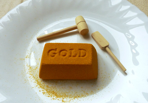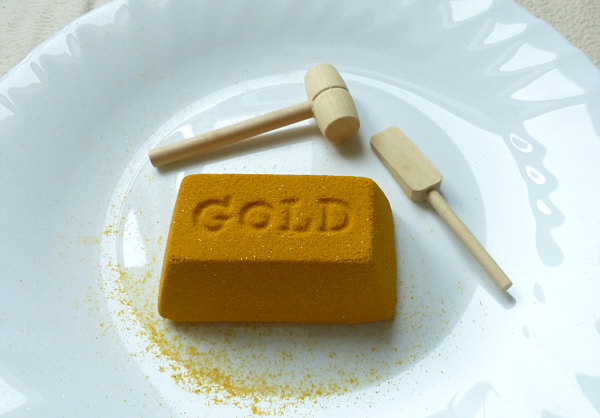 ... auf der Verpackung steht, dass da ein Goldnugget aus Sandstein drin