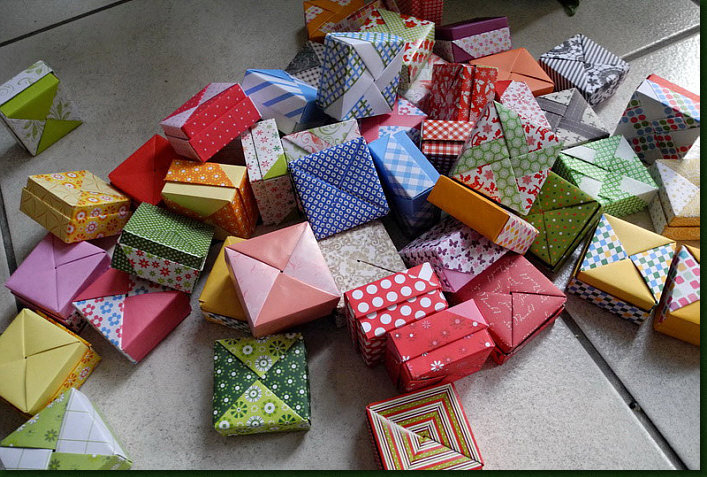 Das sind alles kleine Kästchen, die 5 x 5 Zentimeter groß sind.