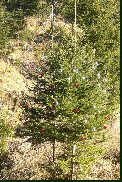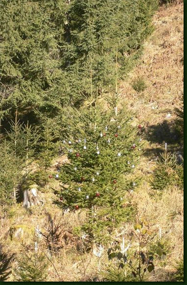 Heute zeige ich den Baum von rena ... sie schreibt: Und hier mein Tannenbaum – da ich ein Baumfan bin – fälle und kaufe ich nie einen Baum. Hier meiner mitten im Wald: morgens mittags weiter