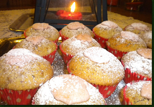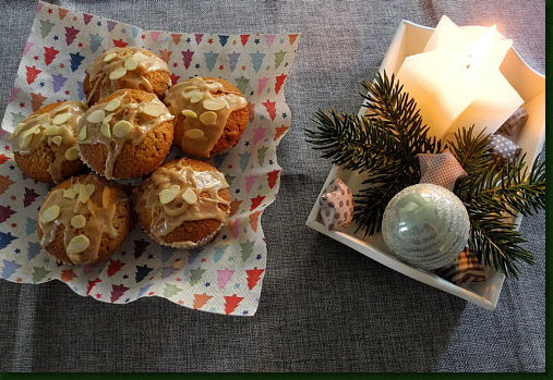 ... ich habe heute die weihnachtlichen Lebkuchen-Muffins gemacht.