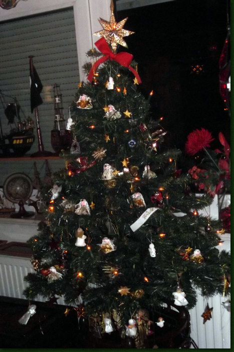 Die vielen kleinen Engelchen, die am Baum hängen, habe ich selbst gebastelt.
