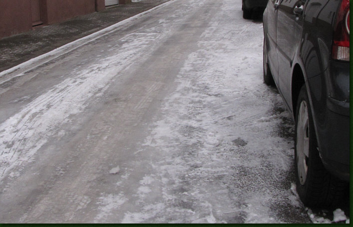 ... ist mein Auto verschwunden, die Straße spiegelglatt ...