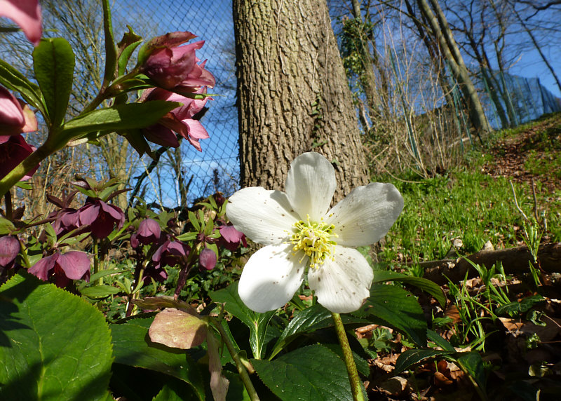 Das sind ... ![]() ... Lenzrosen, von unten nach oben fotografiert. Eine weitere Rose ist auf dem Bild ... ![]() ... da oben links. Drehen wir das Bild doch mal um ... ![]() ... und dann vergrößern wir den Ausschnitt: ![]() Hmm ... leider ist nicht mehr zu sehen ... von der Dame, die das Bild fotografiert hat. Nur ein paar Haare und ein Stück Bluse oder so. Nehmen wir also, was wir haben ... das ist Charlotte aus Frankreich. Das hier könnte auch Charlotte sein ... ![]() ... aber leider auch nur als Schatten auf dem Bild. Wenden wir uns den anderen Blumen zu ... zuerst noch mal zu den Lenzrosen ... ![]() ![]() Charlotte zeigt uns also ihren Frühling 2017 ... und neben den Rosen blüht in weiß ... ![]() ... eine Christrose. Noch ne Rose also. Und auch Veilchen ... ![]() ... und Primeln ... ![]() ... und auch die Narzissen blühen schon. ![]() Das sind so Zeiten, da kannst Du in der Natur einfach sitzen bleiben, die Augen schließen und wenn du die Augen wieder öffnest, dann ist etwas neues erblüht oder ergrünt. |