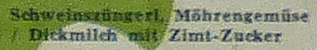 Ähmm ... ja ... es bleiben: Möhrengemüse, Zimt-Zucker und Zwiebeln.