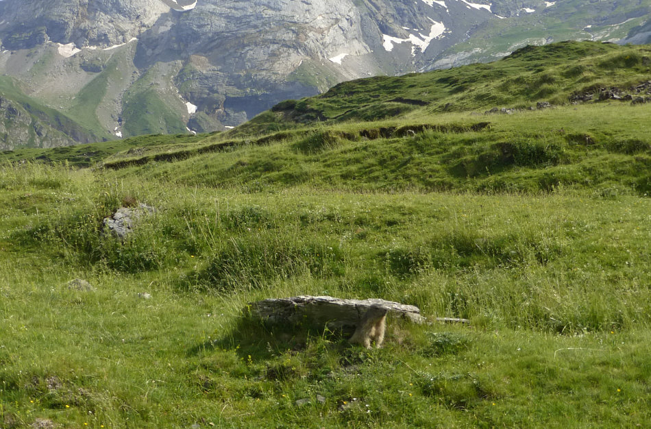 Dieses Bild von Lamarmotte ... ![]() ... scheint nicht wirklich rätselhaft gewesen zu sein ... denn fast jeder hat sie entdeckt. Ich rede von ... ![]() ... den Murmeltieren, die an diesen beiden Stellen im Bild zu sehen waren. Ich selbst hab noch nie welche gesehen ... am ehesten sind sie mir in "und täglich grüßt das Murmeltier" begegnet, das war dann das Waldmurmeltier, das es nur in Amerika gibt. Lamarmotte sagt: "Murmeltiere sind sehr scheu, ziehen sich bei der geringsten echten (z.B. durch Raubvögel) oder vermeintlichen Bedrohung (durch Menschen - im Gegensatz zu Österreich/Schweiz sind sie bei uns streng geschützt) blitzschnell in ihr weitverzweigtes Höhlensystem zurück, und man hat kaum Zeit, einen Blick auf sie zu erhaschen, geschweige denn, eine Kamera zu zücken ..." ... doch genau das ist Lamarmotte gelungen: ![]() ![]() |