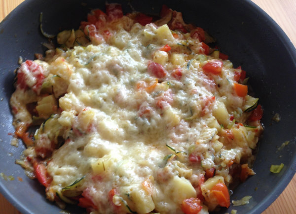Zwiebeln, Paprikaschote, Zuccini, Knoblauch, Lauchzwiebeln und restliche