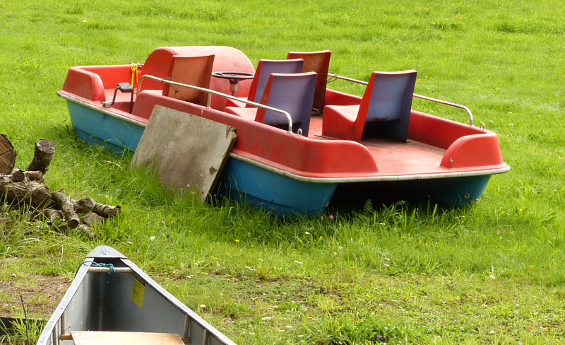 ![]() Der Weiher eines Angelsportclubs ... ![]() ... ich hatte mir ihn als Spaziergangsziel ausgesucht. Auf Google Maps geschaut, wo in der Nähe Wasser oder ein kleiner See ist und hingefahren. Denn wir laufen gerne mal um so einen kleinen See. Ein paar Männer saßen da hinten und erzählten und grüßten uns freundlich, als wir vorbei gingen. Stumm blieb hingegen dieses Boot ... ![]() ... wahrscheinlich träumt es von alten Zeiten. Was man doch so alles mit sich schleppen muss als Angelvereinsmitglied ... ![]() ... unter anderem auch eine Reuse: ![]() Wir laufen nun einfach mal um den See drumrum ... was ist denn das Blaue da hinten ... ![]() ... frage ich mich ... und als wir näher kommen ... ![]() ... frage ich mich das immer noch. Ihr habt Euch das auch gefragt, denn dieses Bild war im Lichtblick gewesen. Eure Ideen waren: Balancierbalken, Bank zum Füße ins Wasser halten, Entenruheplatz, nasser Sandkasten, Teich-Kreuzfahrtschiff für Sparfüchse, Floß, Behältnis für gefangene Fische, Schwimmhilfe für Kinder, Bierkistenfloß. Ich konnte mir keinen Reim darauf machen ... und so liefen wir erstmal ahnungslos um den See rum und guckten, was es hier so noch zu sehen gibt ... Wasserläufer ... ![]() ... schöne Uferwege, bei denen man durch weiches Gras laufen kann ... ![]() ... eine kleine Brücke ... ![]() ... Springkraut ... ![]() ... und Seerosen: ![]() Als wir den See umrundet hatte, ging der letzte der Männer zu seinem Auto, ich ließ ihn aber nicht einsteigen, ohne dass er mir sagt, was das für komische Dingensda am Ufer sind. ![]() Der Mann klärte mich auf ... der Angelsportverein hätte vor kurzem Jubiläum gehabt und damals stand auf dem Programm, was bei der Gründung des Vereins auch auf dem Programm stand: ein Drachenbootrennen Und das sind die Drachenboote, die von Menschen, die auf ihnen sitzen und paddeln, gefahren werden. Eine Seelenfärblerin hatte auch gesagt: "Die Figur vorne erinnert mich ein bißchen an die Drachenboote der Wikinger" ... ![]() ... und damit hat sie sogar die Lösung dieses kleinen Rätsels gewusst. ![]() Danke, dass ihr mit uns um diesen kleinen See gelaufen seid :)). |