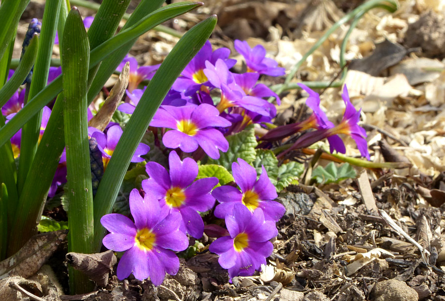 Violett gesellen sich die Primeln dazu:
