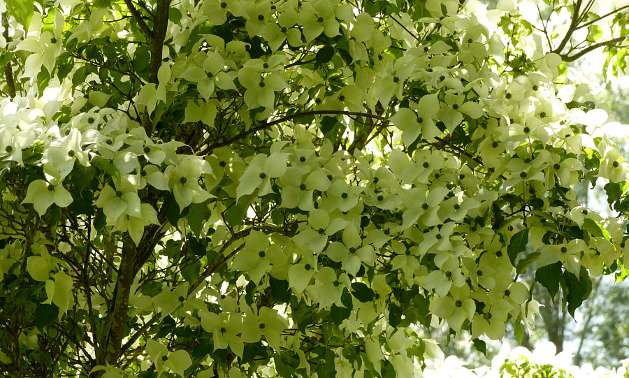 Rechts ein üppig blühender Hartriegel ...