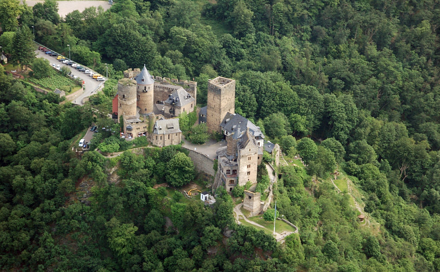 Da isse kaputt ... ![]() ... die schöne Burg. Wir schreiben das Jahr 1873 ... die Burg heißt Schönburg, ist aber als Gebäude gar nicht mehr schön. Liegt aber schön ... wunderschön sogar. Erbaut wurde sie so um 1150 ... 1689 kamen die Franzosen und machten die Burg kaputt. Gegen 1880 wurde die Burg, bzw. das was noch übrig war, an Herr Rhinelander verkauft. Der Herr hieß wirklich so, weil er aus dem Rheinland kam. Die Vorfahren des Herrn Rhinelander wanderten gegen 1790 nach Amerika aus. Und dort begann der amerikanische Traum ... durch Immobiliengeschäfte an der Ostküste wurden Millionen verdient ... so gehört der Familie u.a. das Land, auf dem die Wall Street in New York liegt. Ganz ganz arme Schlucker, sage ich Euch ;)) ... ... und da kann man auch mal eine Burg kaufen. Und ein bißchen dran rumbauen ... so um 1900 sah die Burg dann so aus: ![]() Und so sieht sie heute aus: ![]() Da ist also einiges passiert ... nachdem Herr Rhinelander 1947 gestorben ist, hat die Stadt Oberwesel die Schönburg gekauft und dann den nördlichen Teil 1951-1953 als Jugendburg des Kolpingwerks ausgebaut. Der südliche Teil wird seit 1957 als Hotel genutzt. Durch den Ausbau der Pächterfamilien hat sich das Aussehen der Burg sehr verändert. Vom Rhein bei Oberwesel hat man diesen Blick auf die Burg: ![]() Und ... hey ... wir müssen gar nicht zu Fuß zur Burg laufen ... denn es gibt dort Parkplätze ... ![]() ... und einen Garten ![]() ... mit lauschigen Ecken und einem Lieblingsplatz: