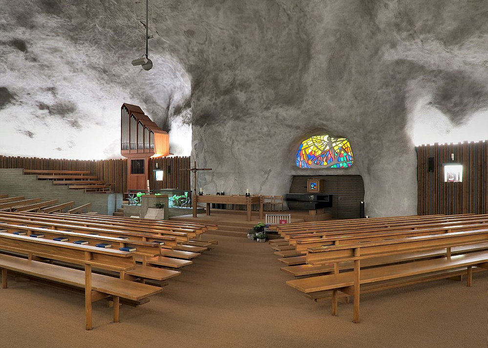 Da oben in die Bergkirche aus dem 16. Jahrhundert ... ![]() ... gehn wir nicht ! Wir gehen da unten in die ... oder besser "in den" ... Berg. ![]() Wir gehen weiter in die 1974 geweihte Kirche, die heute das größte Gotteshaus der Neuzeit, das sich komplett im Felseninnern befindet, ist: ![]() Willkommen in der Felsenkirche St. Michael in Raron im Schweizer Kanton Wallis. Willkommen in der Sonntagskirche von Seelenfarben :)). Deine Gedanken zu diesem Kircheninnenraum ? |