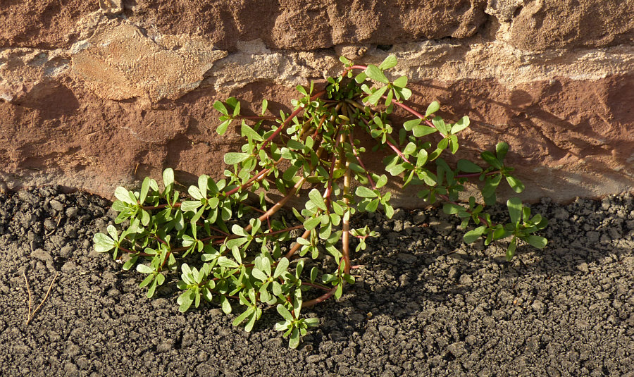 An der Mauer des Friedhofs wächst Portulak ...